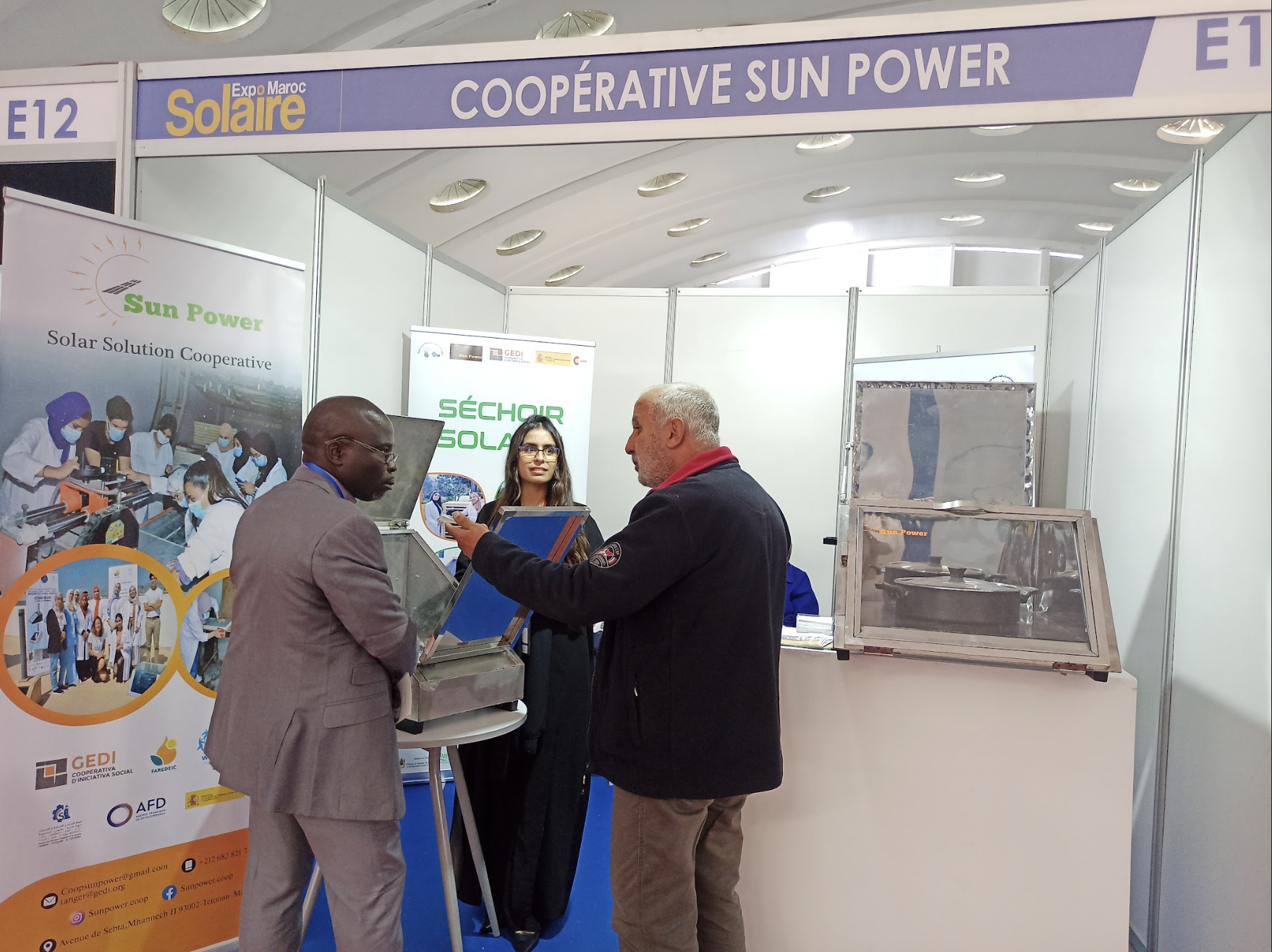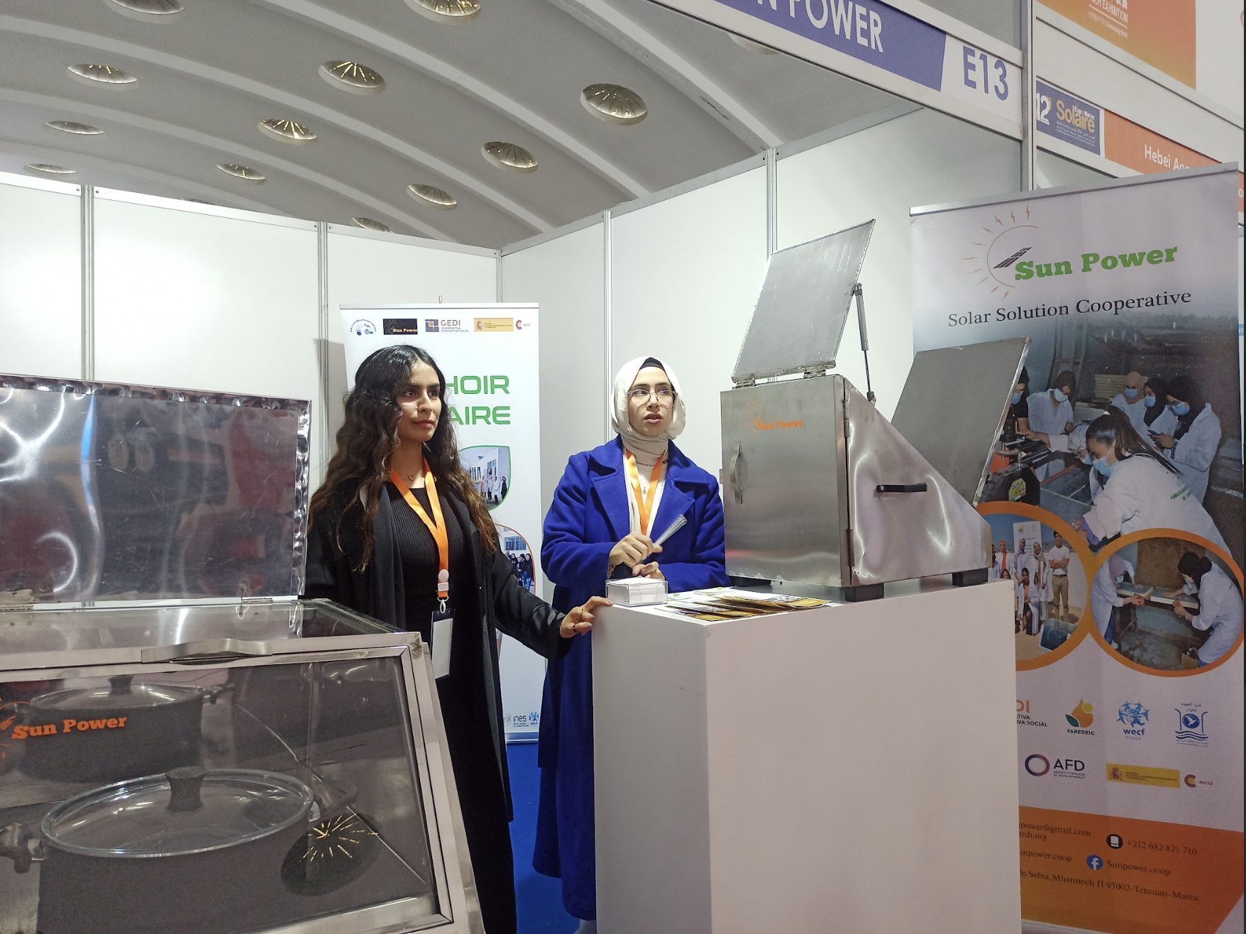 EnglishLa coopérative SUN POWER a eu le plaisir de participer au Solar Expo Maroc à Casablanca, à l’OFEC (Office des Foires et Expositions de Casablanca), du 27 au 29 février 2024. Le thème de cette édition : « Accélération des Énergies Renouvelables et Déploiement de l'Efficacité Énergétique pour la Décarbonation de l'Économie Nationale ». Nous avons présenté nos solutions innovantes en énergie solaire, et partagé notre savoir-faire en matière de cuiseurs et séchoirs solaires.