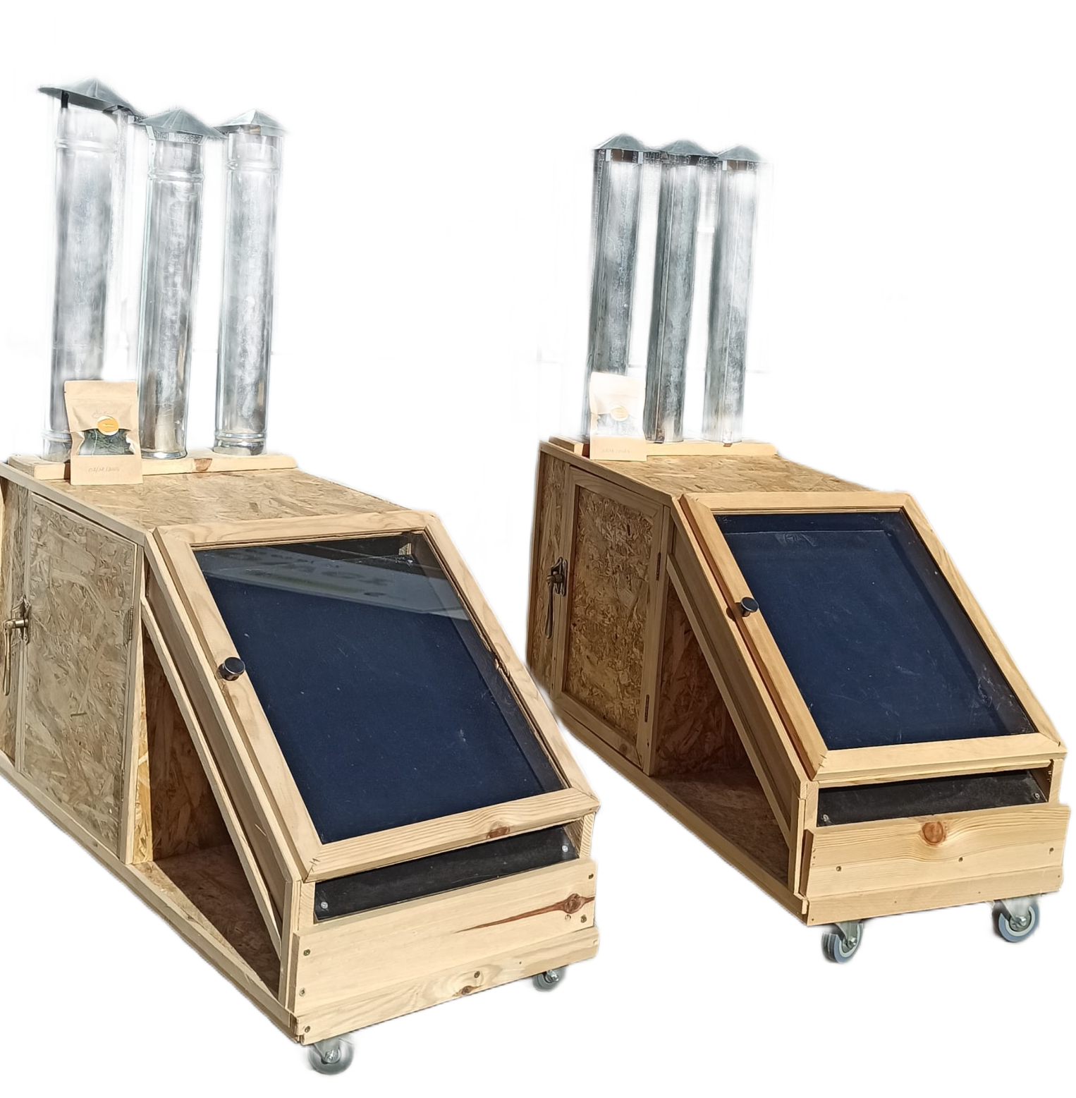 Solar86x40x45 cm4 x (36x22 ) cm²1 hour55°CWood (OSB 3 without formaldehyde) – Glass0.47 – 1.9 kg